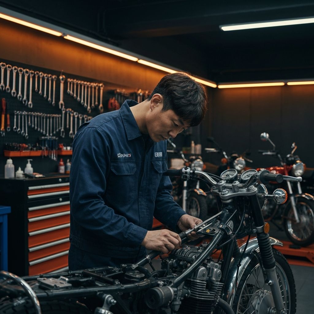 전문 정비사의 숙련된 손길로 완성되는 완벽한 오토바이 정비. 현장의 생생한 모습을 직접 확인하세요.